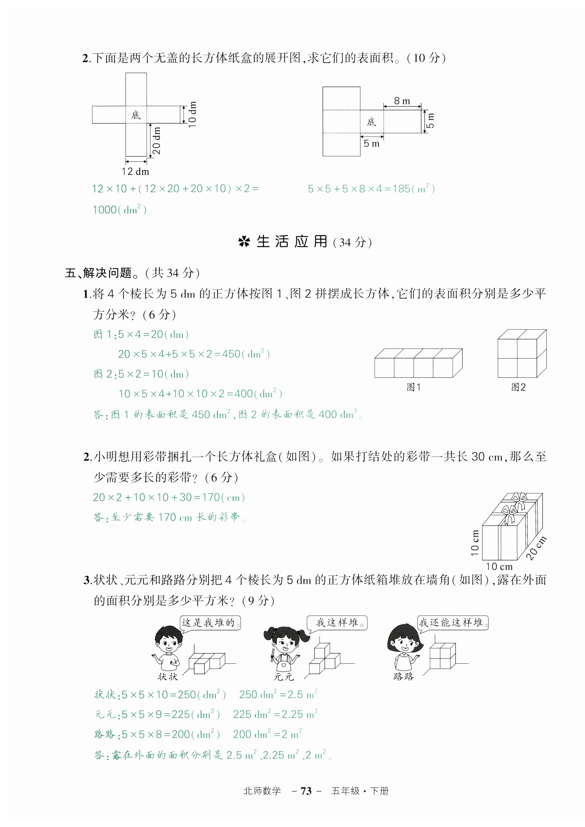 注:目前有些书本章节名称可能整理的还不是很完善,但都是按照顺序排列的,请同学们按照顺序仔细查找。练习册 2025年状元成才路创优作业100分五年级数学下册北师大版 答案主要是用来给同学们做完题方便对答案用的,请勿直接抄袭。