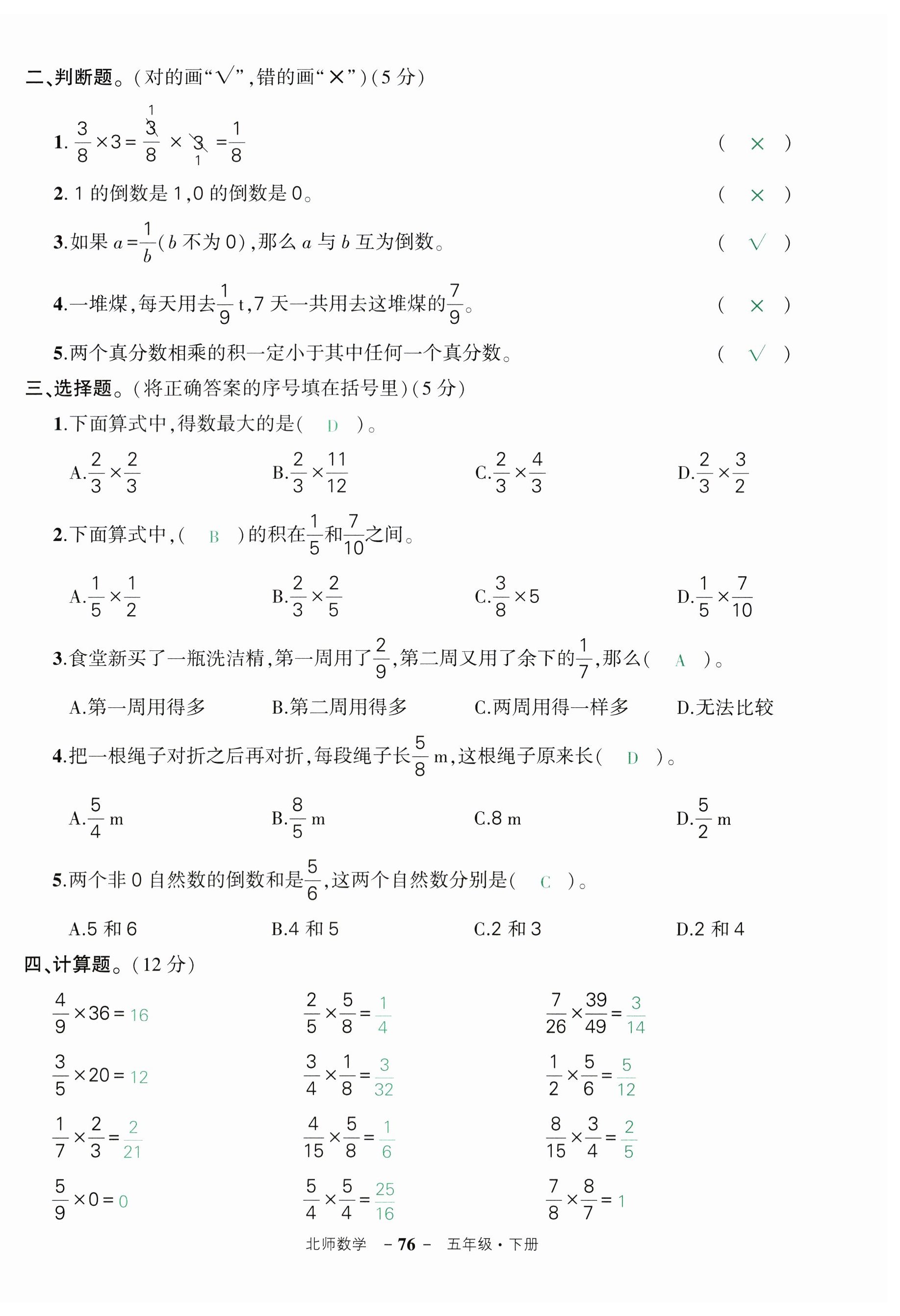 注:目前有些书本章节名称可能整理的还不是很完善,但都是按照顺序排列的,请同学们按照顺序仔细查找。练习册 2025年状元成才路创优作业100分五年级数学下册北师大版 答案主要是用来给同学们做完题方便对答案用的,请勿直接抄袭。