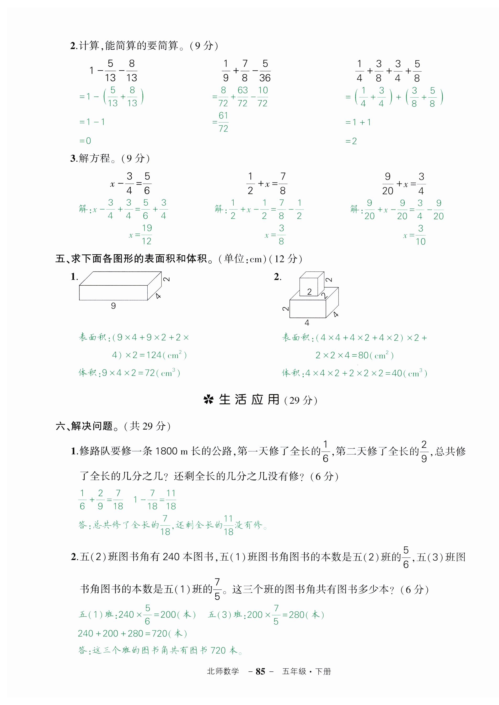 注:目前有些书本章节名称可能整理的还不是很完善,但都是按照顺序排列的,请同学们按照顺序仔细查找。练习册 2025年状元成才路创优作业100分五年级数学下册北师大版 答案主要是用来给同学们做完题方便对答案用的,请勿直接抄袭。