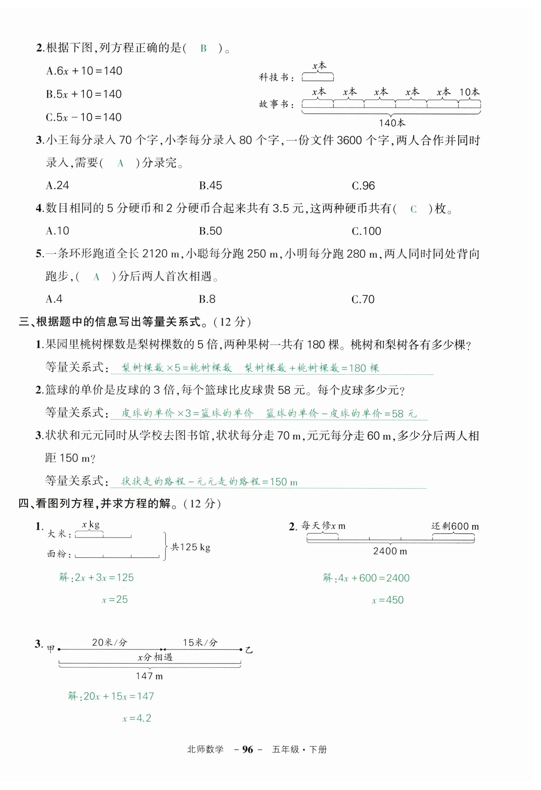 注:目前有些书本章节名称可能整理的还不是很完善,但都是按照顺序排列的,请同学们按照顺序仔细查找。练习册 2025年状元成才路创优作业100分五年级数学下册北师大版 答案主要是用来给同学们做完题方便对答案用的,请勿直接抄袭。