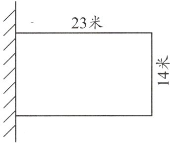 3. 如图,王爷爷家用篱笆围了一块长方形菜地,长23米,宽14米,一面靠墙。围这块菜地要用篱笆多少米?这块菜地的面积是多少平方米?
