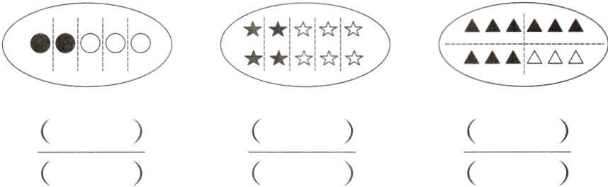 (1) 把一张长方形纸对折三次,这张纸被平均分成若干份,每份是这张纸的( )。