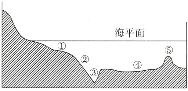 7.D 解析:读图分析,①是大陆架,②是大陆坡,③是海沟,④是洋盆,⑤是大洋中脊。大洋中脊是大洋中新海底诞生的地方,火山、地震活动比较剧烈,是海底分裂产生新地壳的地带。