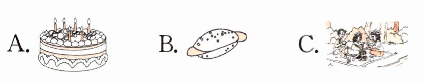 1.picnic 2.bread 3.chicken 4.Coke 5.rice
