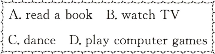 1.storybook 2.watch TV 3.play, Sunday 4.music/piano