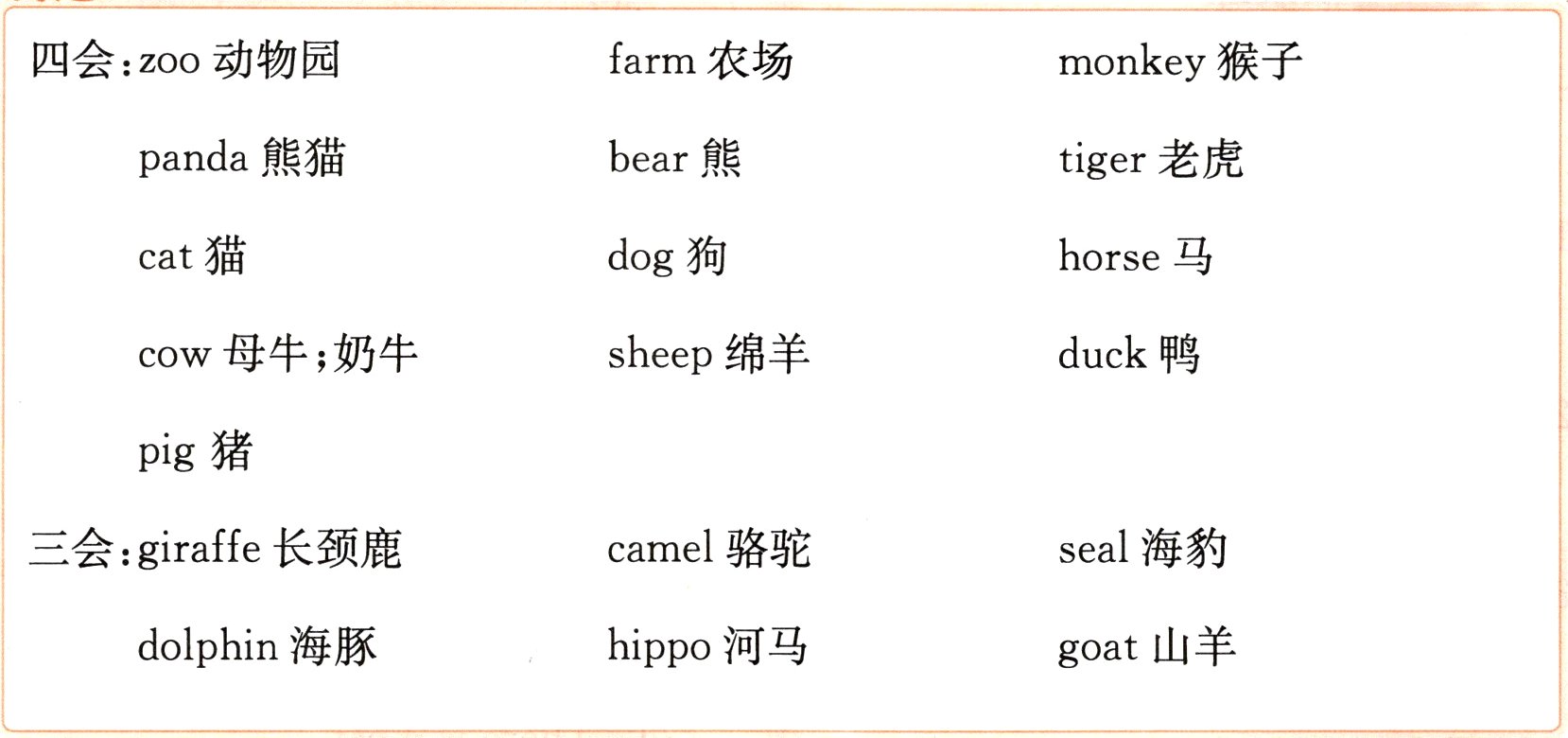1. C [解析] school(学校)、zoo(动物园)和farm(农场)都表示场所,tiger(老虎)表示动物。