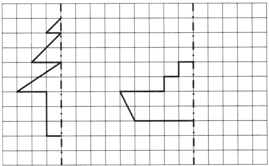 3. 把右边的图形补全,使它们成为轴对称图形,看看是什么图案。