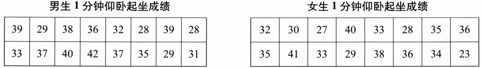 3. 比较一下这个班男生和女生的1分钟仰卧起坐成绩。(5分)