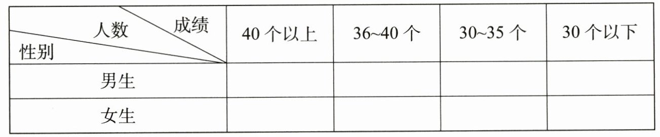 五、下面是小明统计的本班同学1分钟仰卧起坐的成绩(单位:个),你能根据下面的成绩完成统计表吗?(28分)