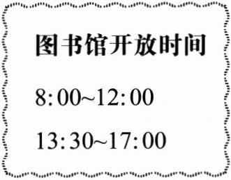 (1)图书馆上午开放( )小时,中午( )时开始休息。