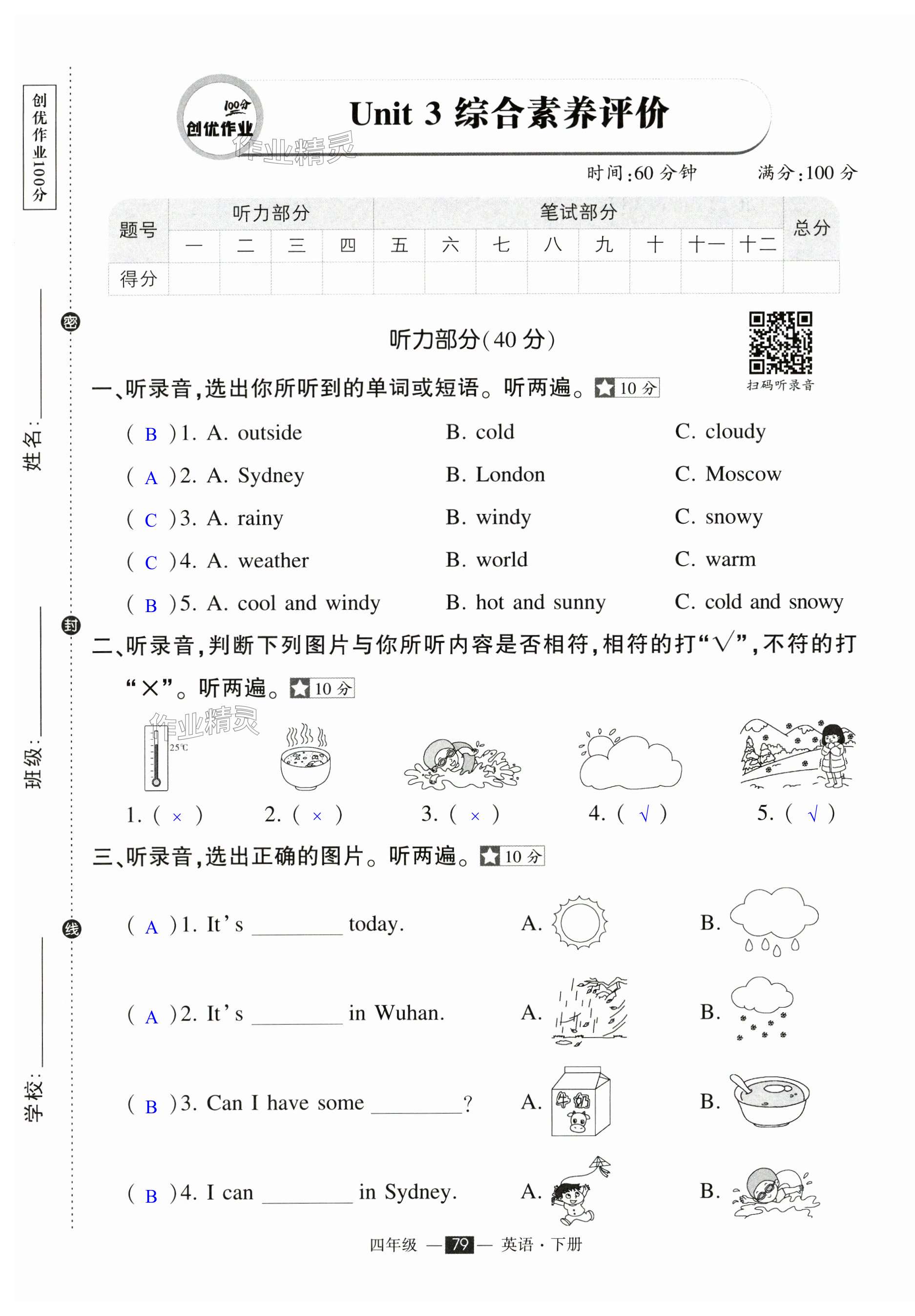 注:目前有些书本章节名称可能整理的还不是很完善,但都是按照顺序排列的,请同学们按照顺序仔细查找。练习册 2025年状元成才路创优作业100分四年级英语下册人教版浙江专版 答案主要是用来给同学们做完题方便对答案用的,请勿直接抄袭。