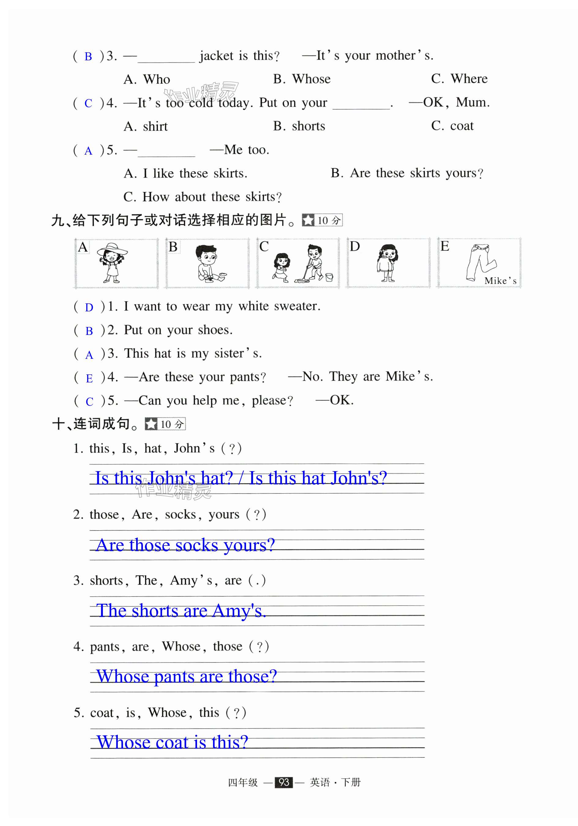注:目前有些书本章节名称可能整理的还不是很完善,但都是按照顺序排列的,请同学们按照顺序仔细查找。练习册 2025年状元成才路创优作业100分四年级英语下册人教版浙江专版 答案主要是用来给同学们做完题方便对答案用的,请勿直接抄袭。