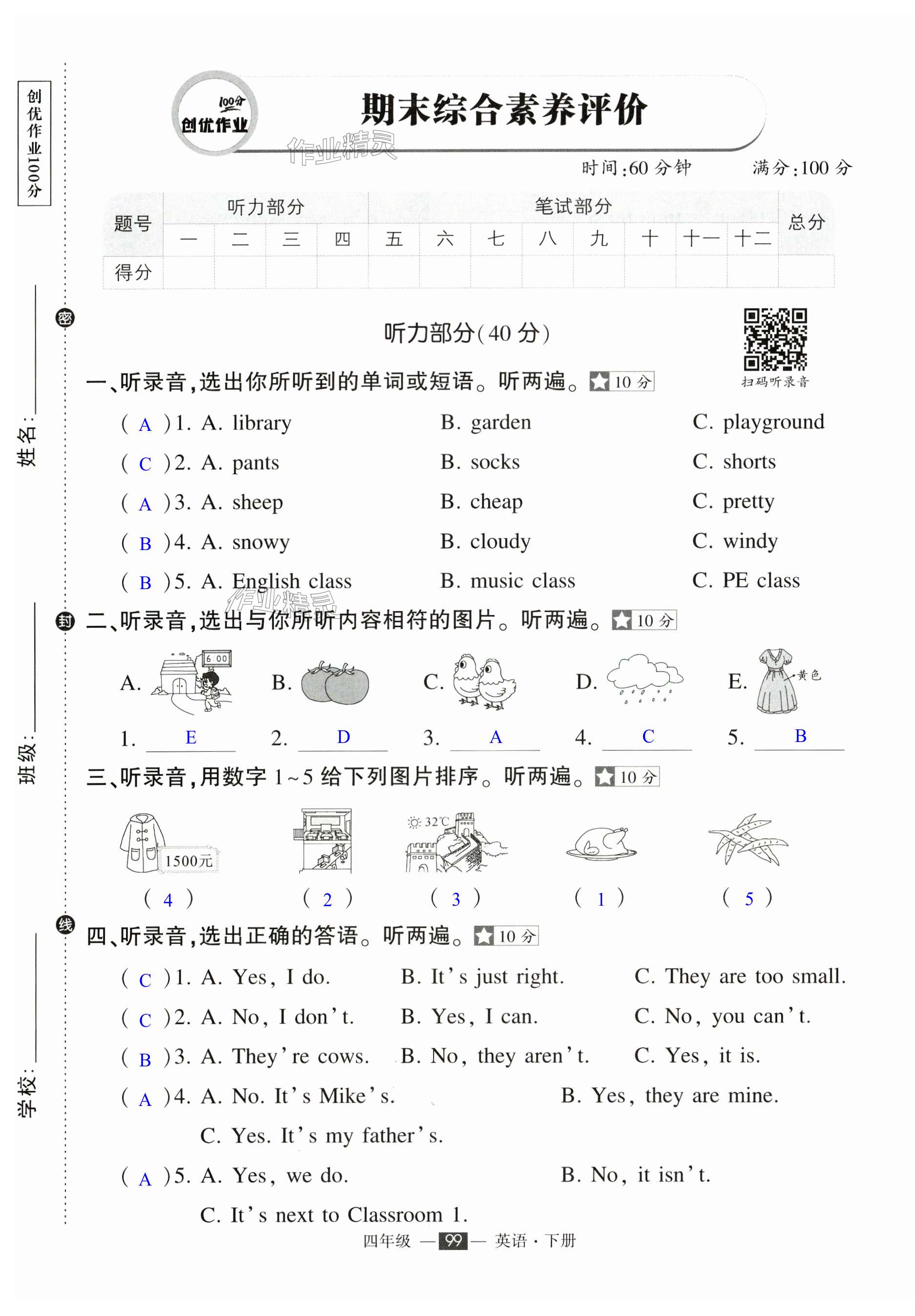 注:目前有些书本章节名称可能整理的还不是很完善,但都是按照顺序排列的,请同学们按照顺序仔细查找。练习册 2025年状元成才路创优作业100分四年级英语下册人教版浙江专版 答案主要是用来给同学们做完题方便对答案用的,请勿直接抄袭。