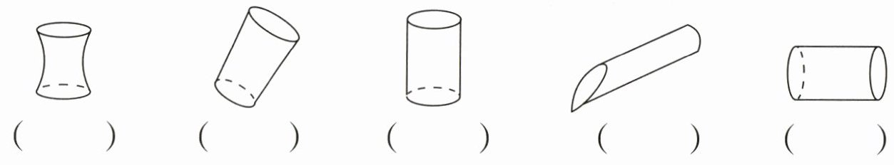 1. 下面图形,是圆柱的画“√”,不是圆柱的画“×”。