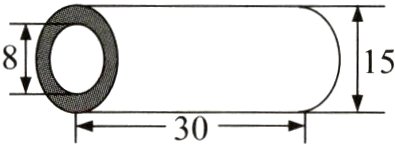$3.14×[(\frac{15}{2})^{2}-(\frac{8}{2})^{2}]×30 = 3791.55$($cm^{3}$)