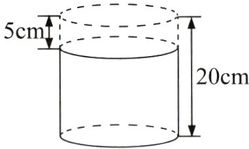 4. 如图所示,一个圆柱被截去5cm,圆柱的表面积减少了188.4$cm^{2}$。原来圆柱的体积是多少立方厘米?(5分)