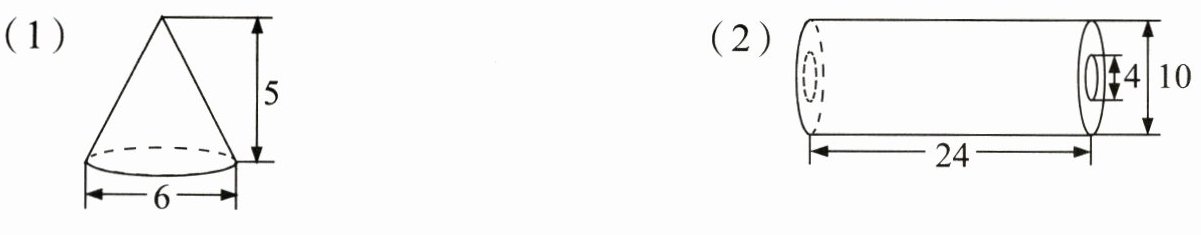 (2) $3.14×[(10÷2)^{2}-(4÷2)^{2}]×24 = 1582.56(dm^{3})$