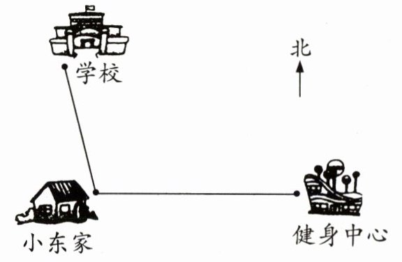(2) 小东家到健身中心的图上距离是3cm,实际距离是( )m。(2分)