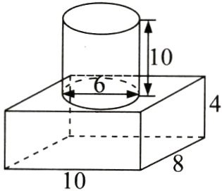 10×8×4 + 3.14×$(\frac{6}{2})^2$×10 = 602.6(立方厘米)