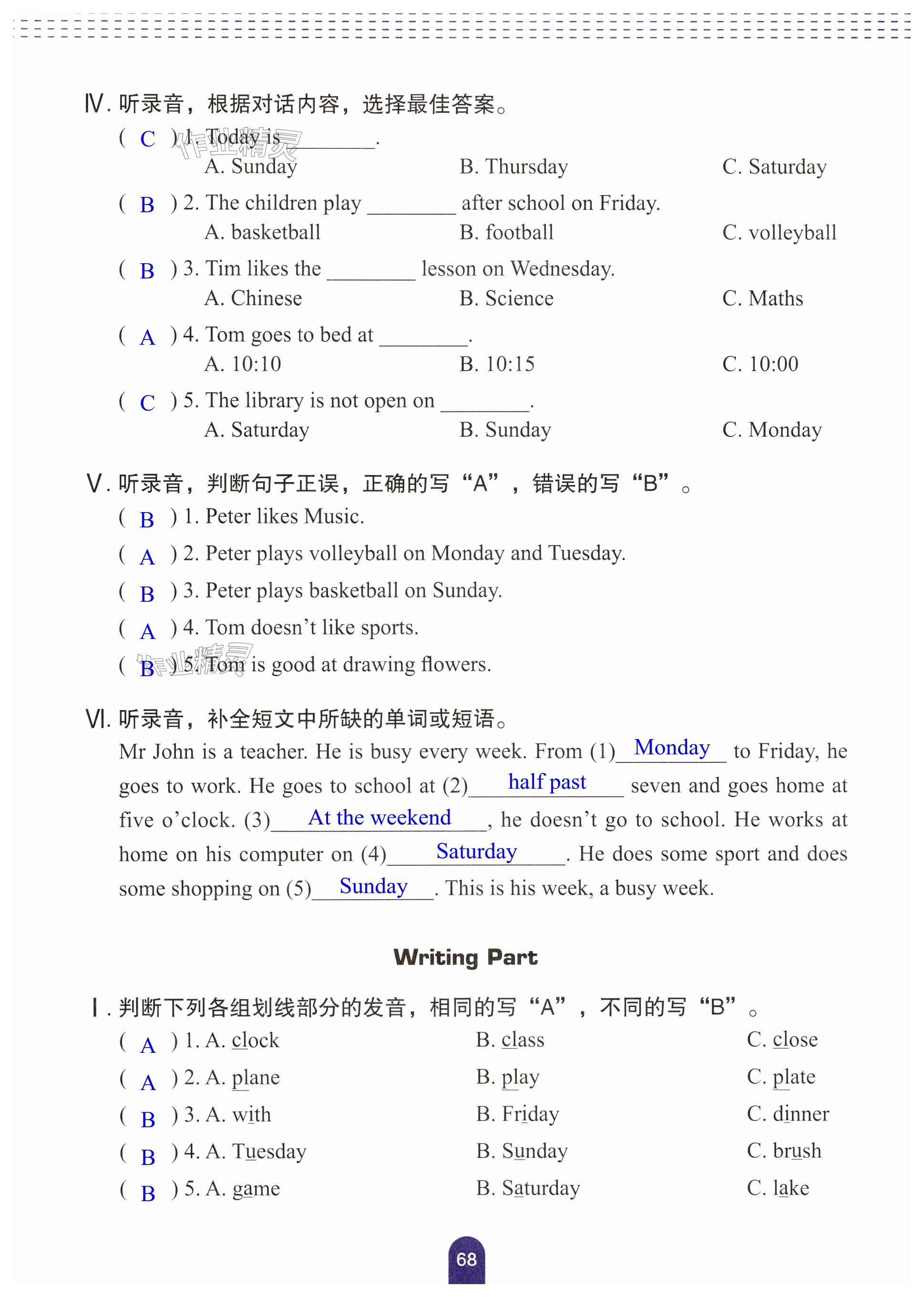 注:目前有些书本章节名称可能整理的还不是很完善,但都是按照顺序排列的,请同学们按照顺序仔细查找。练习册 2025年深圳市小学英语课堂跟踪四年级下册沪教版 答案主要是用来给同学们做完题方便对答案用的,请勿直接抄袭。