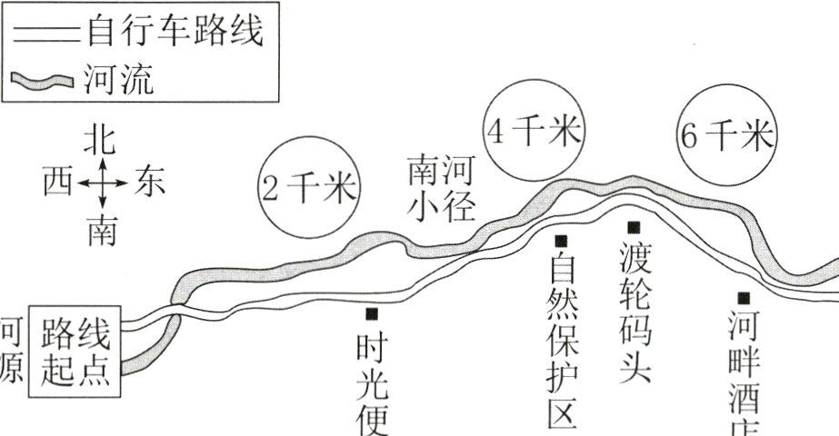 (1) 通过这张游览南河小径的自行车骑行地图,可知南河小径的终点在(2分)