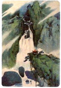 [乙]梅雨潭闪闪的绿色招引着我们,我的心随梅雨潭水的绿而摇荡。那醉人的绿呀,仿佛一张极大极大的荷叶铺着,满是奇异的绿呀。