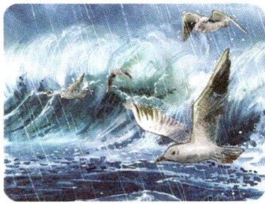 海鸥在暴风雨来临之前呻吟着,——呻吟着,它们在大海上飞窜,想把自己对暴风雨的恐惧,掩藏到大海深处。