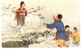 4. 结合学过的《牛郎织女》的故事,我知道画“﹏﹏”的诗句描绘的画面是 ( )