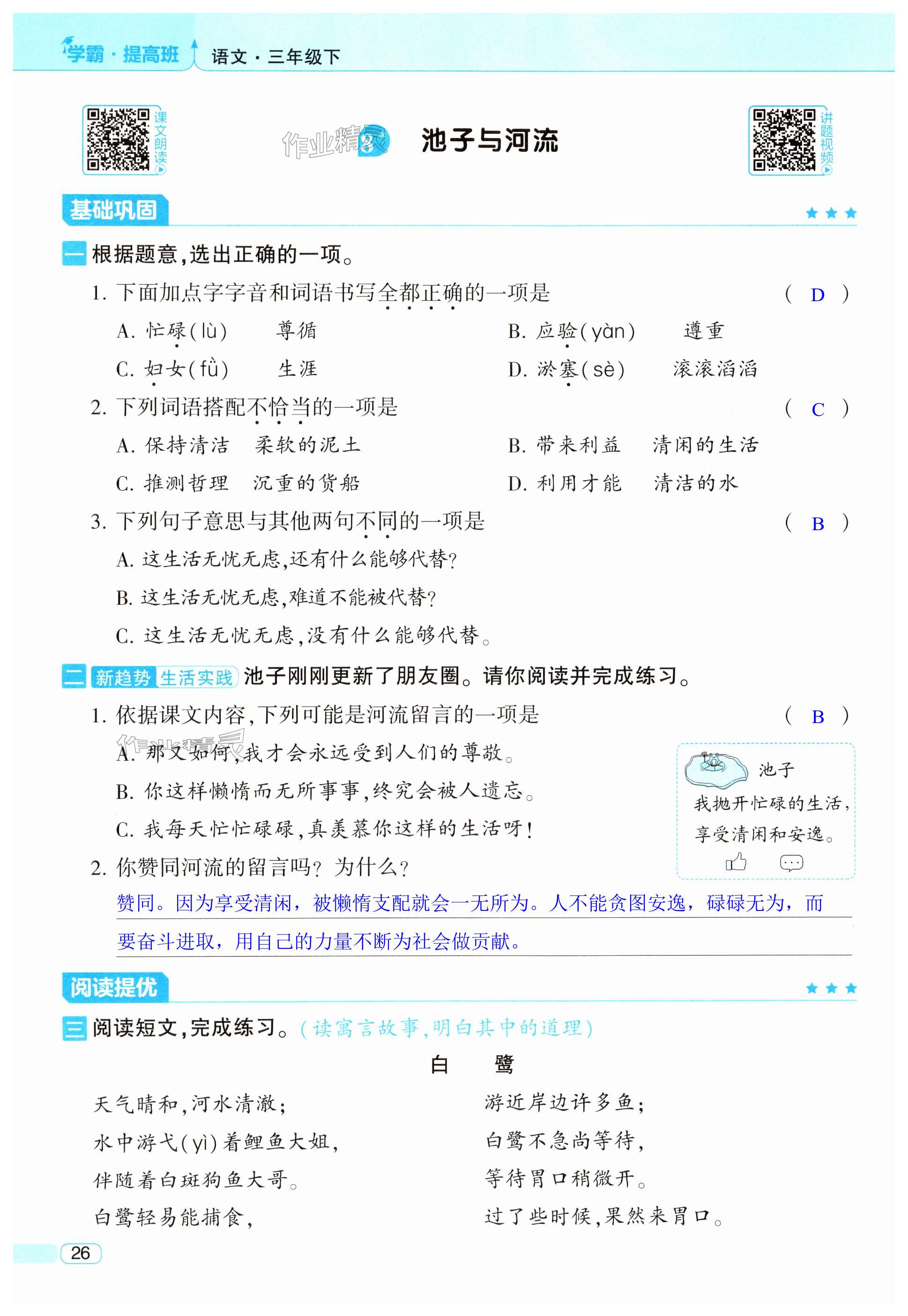 注:目前有些书本章节名称可能整理的还不是很完善,但都是按照顺序排列的,请同学们按照顺序仔细查找。练习册 2025年经纶学典提高班三年级语文下册人教版江苏专版 答案主要是用来给同学们做完题方便对答案用的,请勿直接抄袭。
