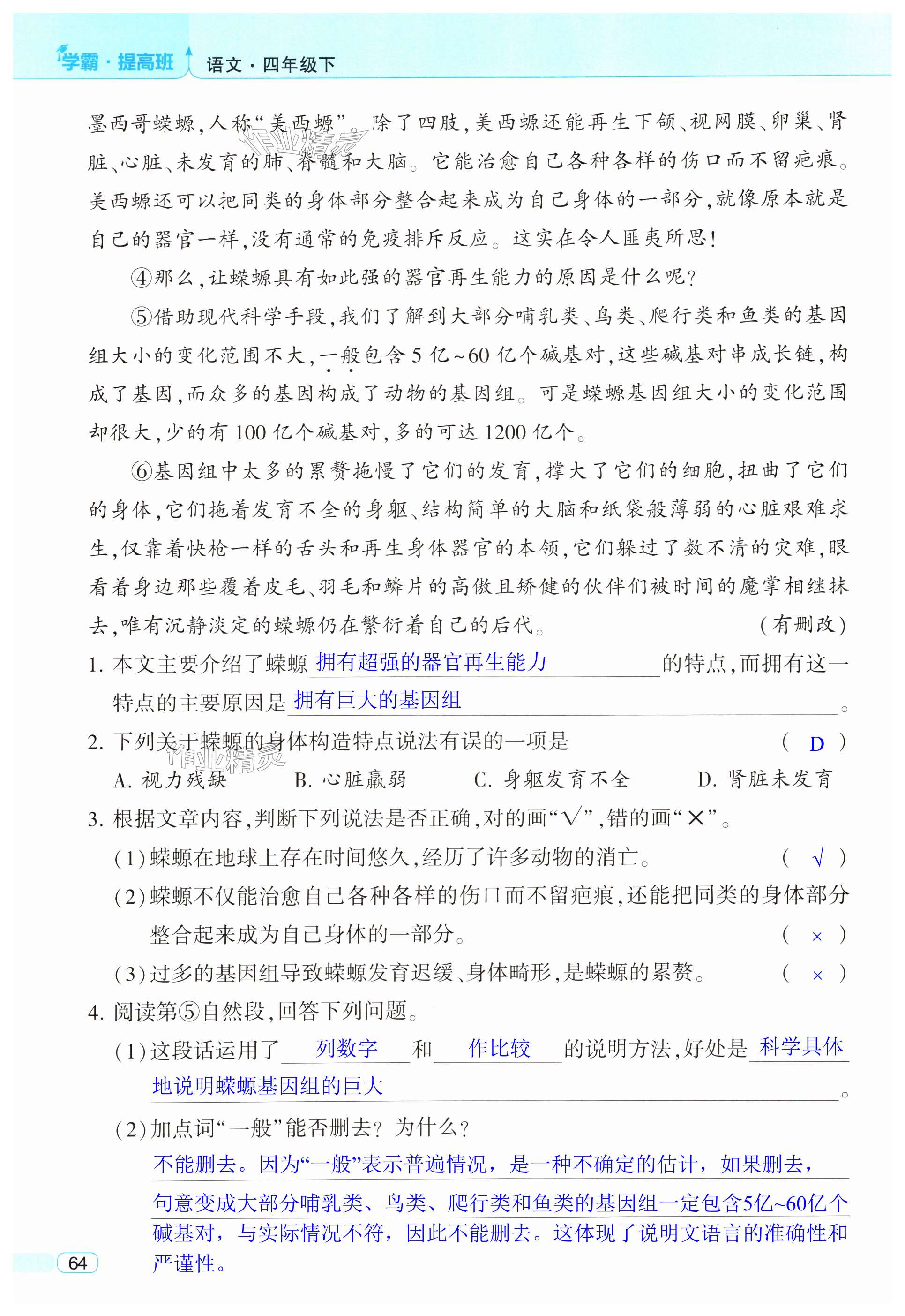 注:目前有些书本章节名称可能整理的还不是很完善,但都是按照顺序排列的,请同学们按照顺序仔细查找。练习册 2025年经纶学典提高班四年级语文下册人教版江苏专版 答案主要是用来给同学们做完题方便对答案用的,请勿直接抄袭。