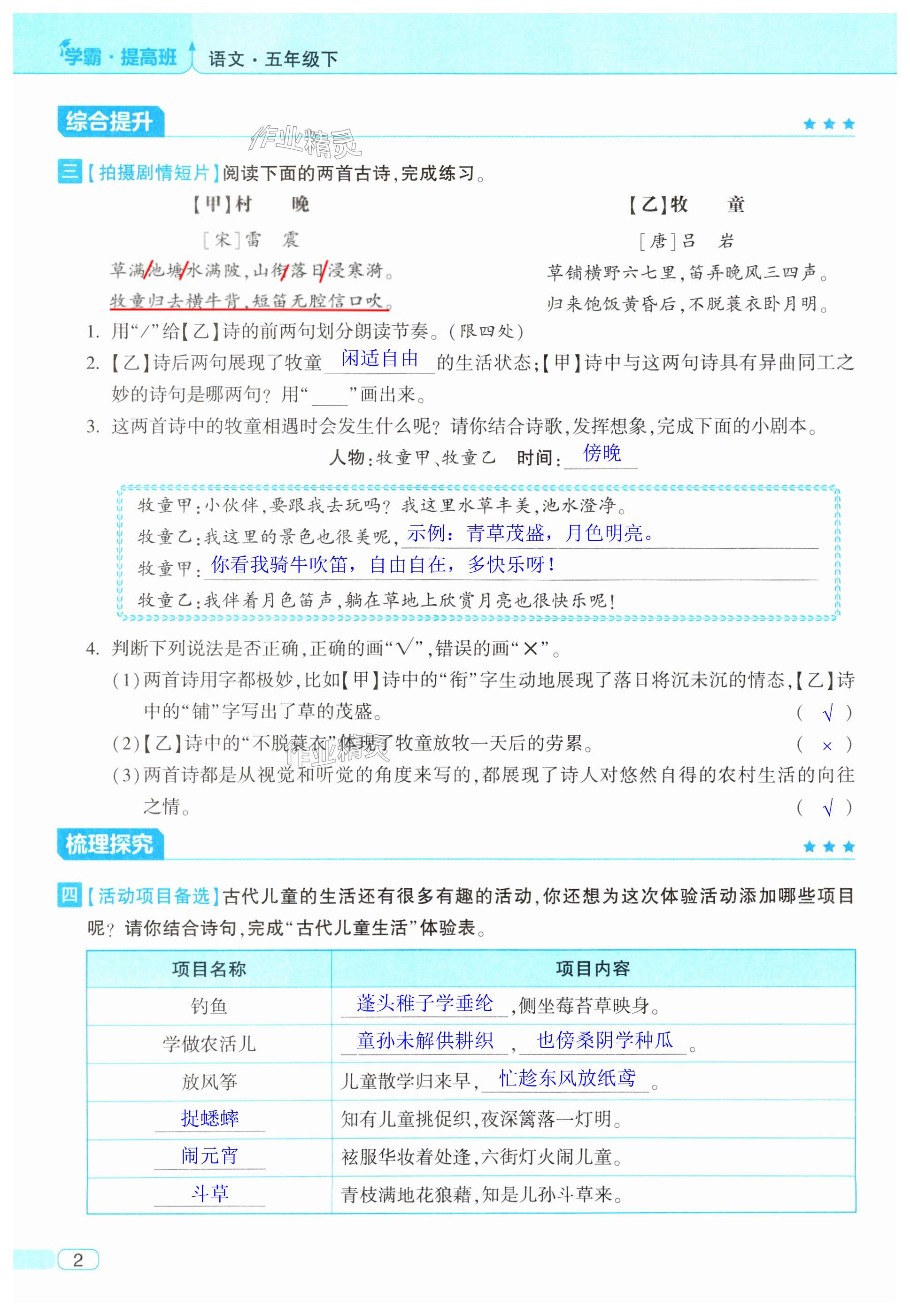 注:目前有些书本章节名称可能整理的还不是很完善,但都是按照顺序排列的,请同学们按照顺序仔细查找。练习册 2025年经纶学典提高班五年级语文下册人教版江苏专版 答案主要是用来给同学们做完题方便对答案用的,请勿直接抄袭。