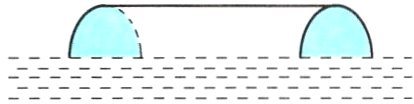 3. 如图,一根长是1米、横截面直径是60厘米的圆柱形木头浮在水面上,正好有一半露出水面。露在水面上的木头的表面积和体积分别是多少?