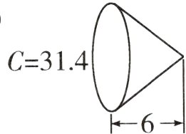5. $\frac{1}{3}\times3.14\times3^{2}\times12 = 113.04$(立方厘米)
