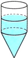 5. 如图,在一个由等高的圆锥和圆柱组成的高为8厘米的玻璃容器中加入一些水,并盖上盖子,水面高6厘米。当把这个玻璃容器倒过来时,水面高多少厘米?