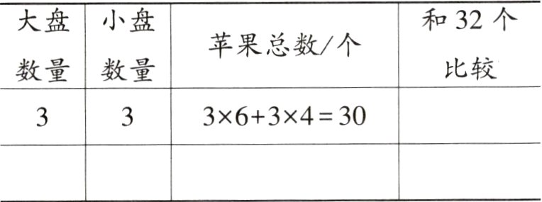 |大盘数量|小盘数量|苹果总数/个|和32个比较|