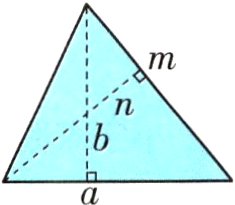 (3) 如图,三角形长为$a$的边上的高是$b$,长为$m$的边上的高是$n$。下面比例中正确的是( )。