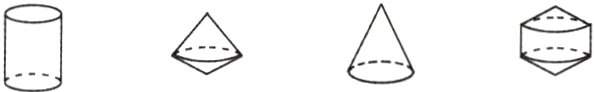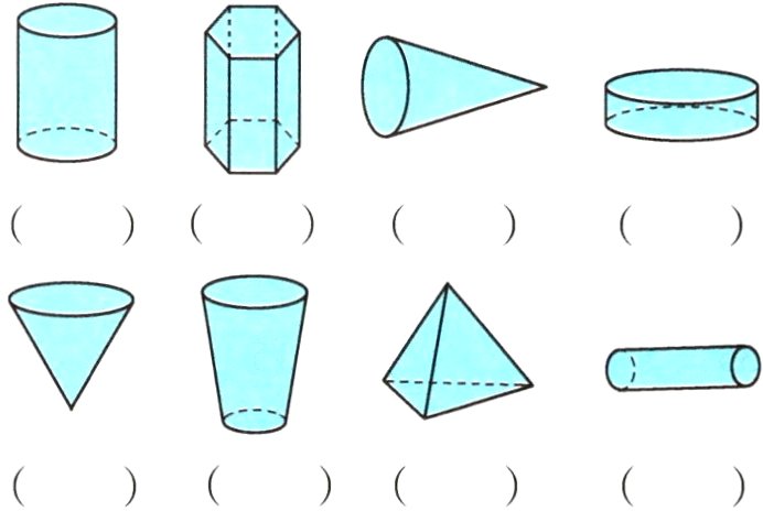 1. 观察下面的图形,是圆柱的在括号里画“○”,是圆锥的在括号里画“△”。