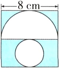 提示:半圆圆弧的长度等于小圆的周长,所以小圆的半径是3.14×8÷2÷3.14÷2 = 2(厘米),长方形的宽是2×2 + 8÷2 = 8(厘米),即该纸片为正方形纸片,因此剩余部分的面积是8×8 - 3.14×(8÷2)²÷2 - 3.14×2² = 26.32(平方厘米)。