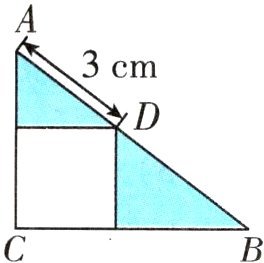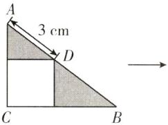 提示:由题可知,直角三角形中的空白部分是正方形,所以空白部分的四条边都相等,且每个角是90°。将上面的小三角形绕点D逆时针旋转90°,可以将涂色部分拼在一起,形成一个大直角三角形(如图)。这个大直角三角形的面积是6平方厘米,BD边上的高是3厘米,所以线段BD的长是$6 \times 2 \div 3 = 4$(厘米)。