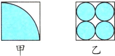 (3) 如图,甲、乙两个小朋友用相同的正方形手工纸进行裁剪,甲剪了一个最大的扇形,乙剪了四个最大的圆,两个小朋友剩下的手工纸相比,( )多。