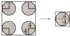 提示:如图,把四个角上的小正方形拼在一起,会发现圆不能接触到的部分的面积为(4×2)×(4×2)−3.14×4²=13.76(平方厘米)。