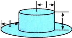 4. 如图,一顶帽子的帽顶部分是一个用彩纸做的圆柱,帽檐部分是一个用同样的彩纸做的圆环。做这顶帽子至少要用多少平方分米的彩纸?(不计损耗,单位:分米)