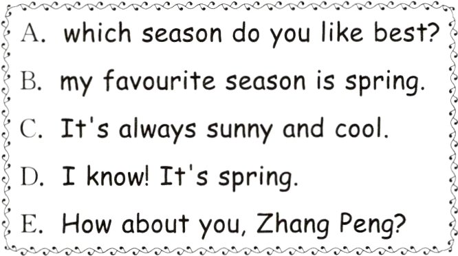 4. It's a beautiful season. There are many flowers everywhere. It's ________. ( )