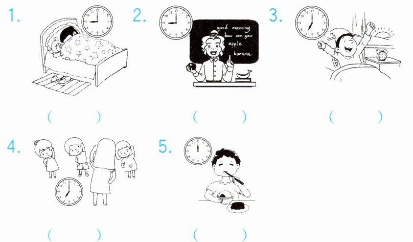 1.breakfast 2.sports 3.dinner 4.class 5.exercises