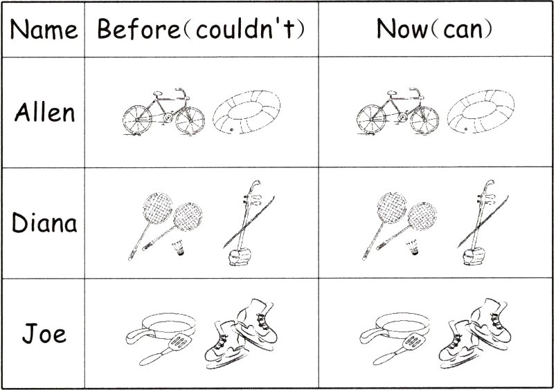 ( )1. Before, Allen couldn't go cycling or play the pipa.
