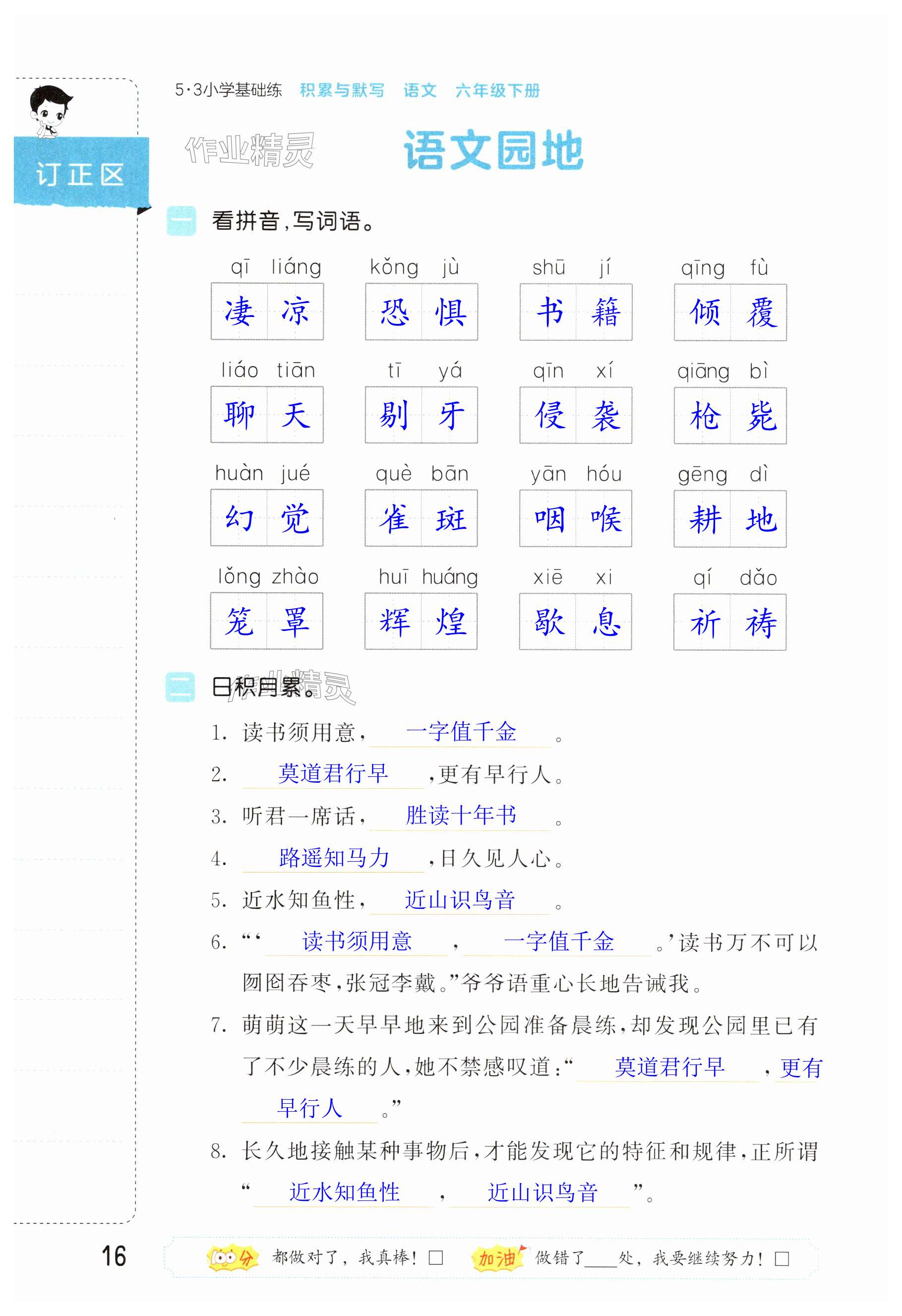 注:目前有些书本章节名称可能整理的还不是很完善,但都是按照顺序排列的,请同学们按照顺序仔细查找。练习册 2025年积累与默写首都师范大学出版社六年级语文下册人教版 答案主要是用来给同学们做完题方便对答案用的,请勿直接抄袭。