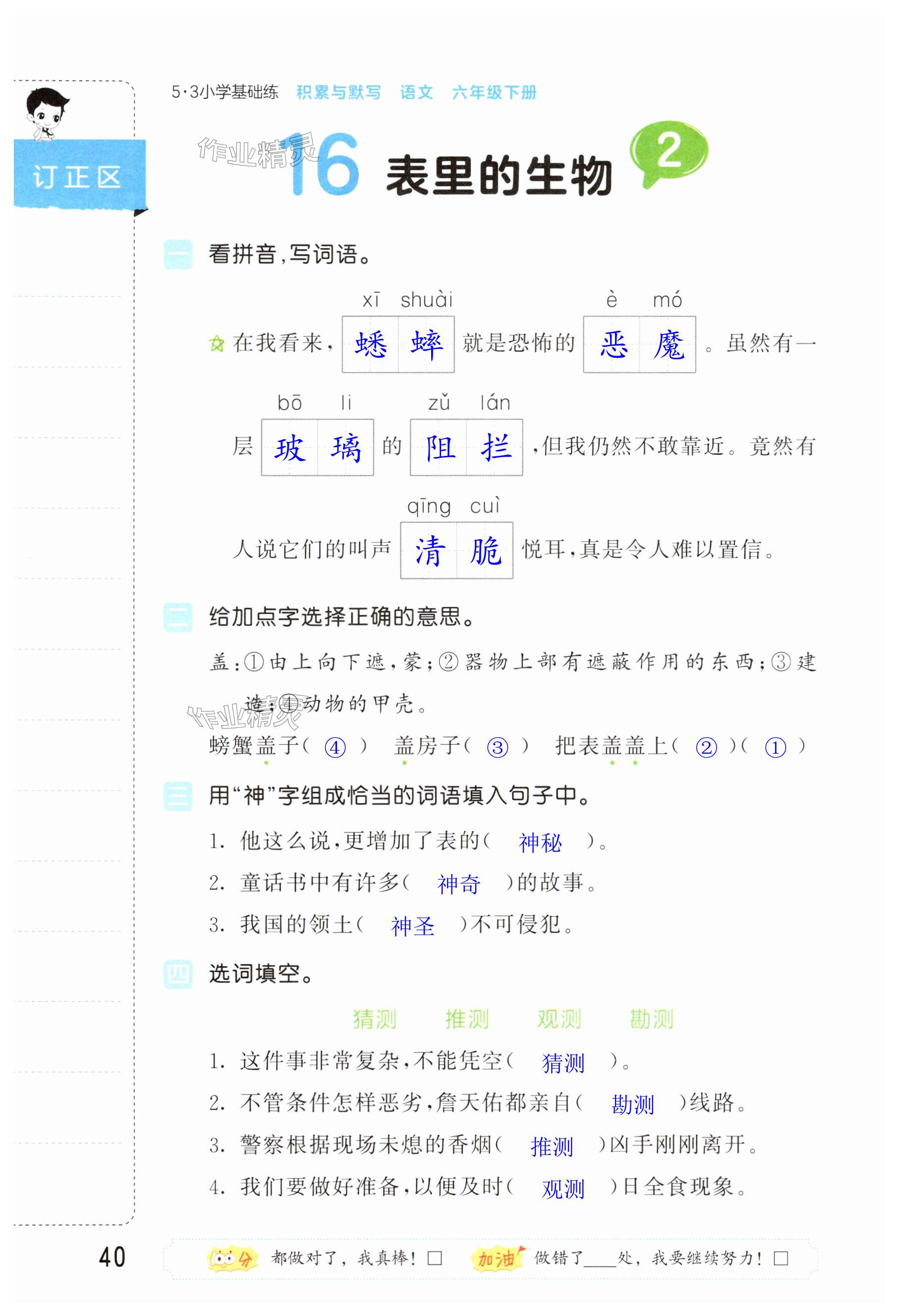 注:目前有些书本章节名称可能整理的还不是很完善,但都是按照顺序排列的,请同学们按照顺序仔细查找。练习册 2025年积累与默写首都师范大学出版社六年级语文下册人教版 答案主要是用来给同学们做完题方便对答案用的,请勿直接抄袭。