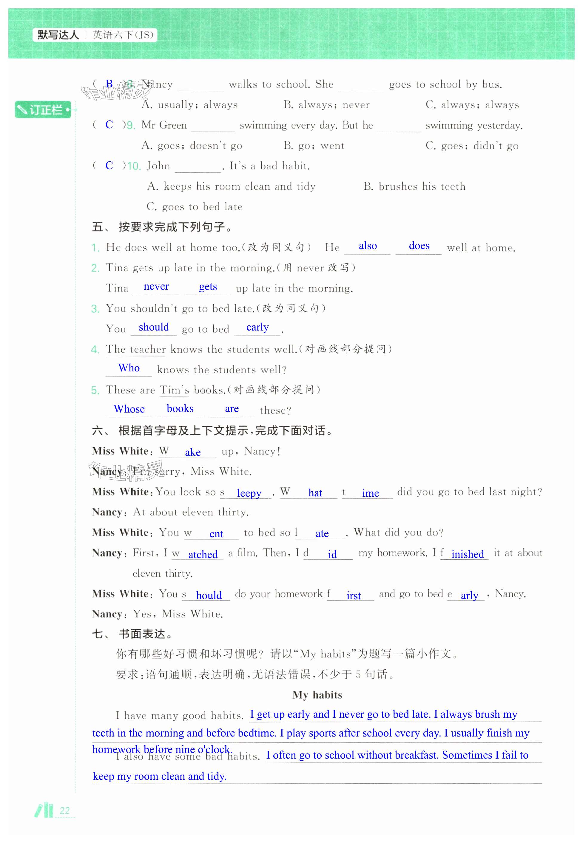 注:目前有些书本章节名称可能整理的还不是很完善,但都是按照顺序排列的,请同学们按照顺序仔细查找。练习册 2025年经纶学典默写达人六年级英语下册译林版 答案主要是用来给同学们做完题方便对答案用的,请勿直接抄袭。