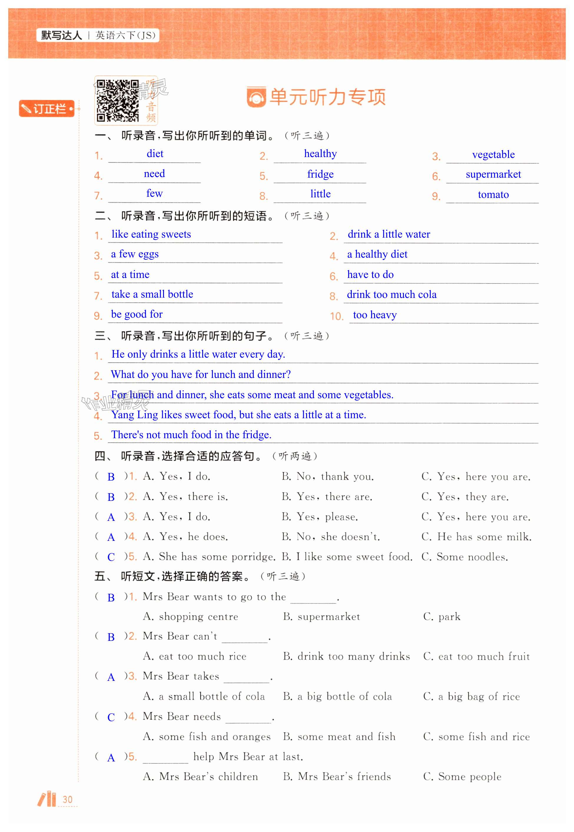 注:目前有些书本章节名称可能整理的还不是很完善,但都是按照顺序排列的,请同学们按照顺序仔细查找。练习册 2025年经纶学典默写达人六年级英语下册译林版 答案主要是用来给同学们做完题方便对答案用的,请勿直接抄袭。