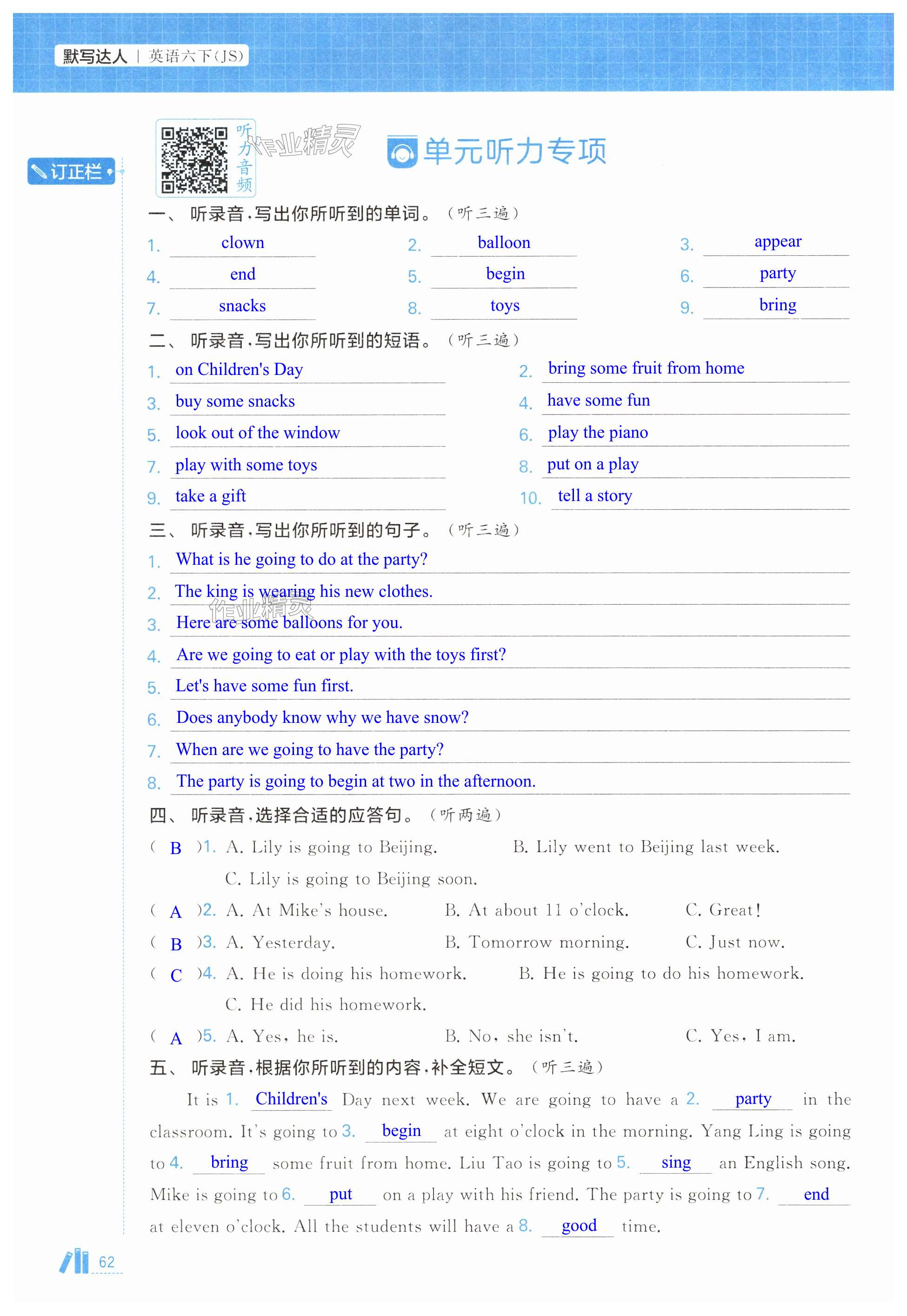 注:目前有些书本章节名称可能整理的还不是很完善,但都是按照顺序排列的,请同学们按照顺序仔细查找。练习册 2025年经纶学典默写达人六年级英语下册译林版 答案主要是用来给同学们做完题方便对答案用的,请勿直接抄袭。